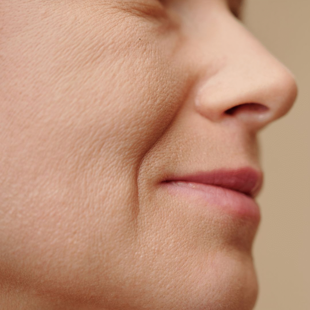- Dry facial skin, with flakes and lines