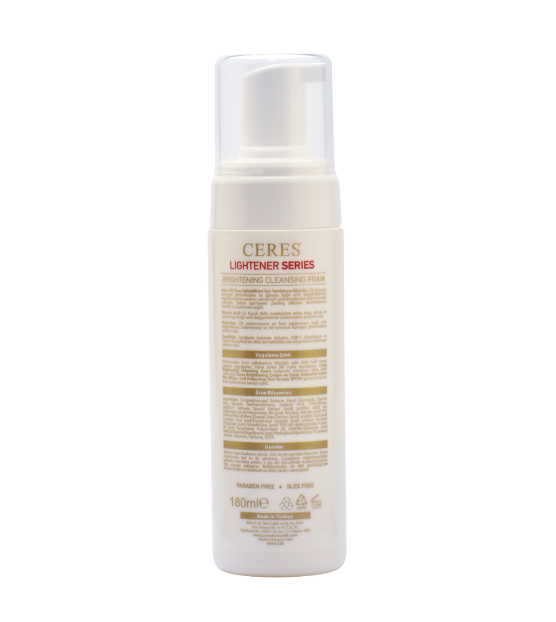 Excessive production of melanin, the pigment responsible for our skin color, causes the formation of dark spots on the skin. Skin spots occur for many reasons (sun, genetic predisposition, hormonal changes, aging, etc.). Skin spots can appear on the forehead, cheeks, above the lips, back, chest, shoulders, armpits, bikini area, and the tops of the hands.Brightening Cleansing Foam is formulated to cleanse the skin while helping to achieve a more even skin tone and prevent sun-induced color changes. It provides deep cleansing and refreshing with its soap-free peeling effect.Important Assets in Content