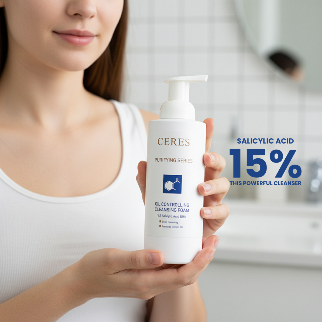 Get clear, bright skin while cleansing with Ceres Derma Oil Control Cleansing Foam. 15% salicylic acid. This effective acne face wash is made with a combination of natural ingredients to help remove extra oil from your skin and cure breakouts, blackheads, pimples & deep pore cleanser. It is a soap-free & clinically approved product. Clear the skin, bright, glowing, and hydrate to reveal skin that looks renewed and youthful, and face the day with confidence!