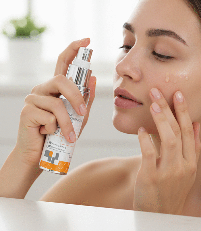 Vitamin Complex Solution for a fresh glow. This powerful anti-aging formula features ingredients such as Snow Algae Powder, Borage Oil, and Nano Lipobella H-AECL to transform your skin. It works by firming the skin and reducing the appearance of fine lines, resulting in tighter, firmer, and more hydrated skin. The formula rejuvenates your skin, leaving it silky and radiant. Unlock your skin’s potential and reveal a younger, healthier complexion with every drop.