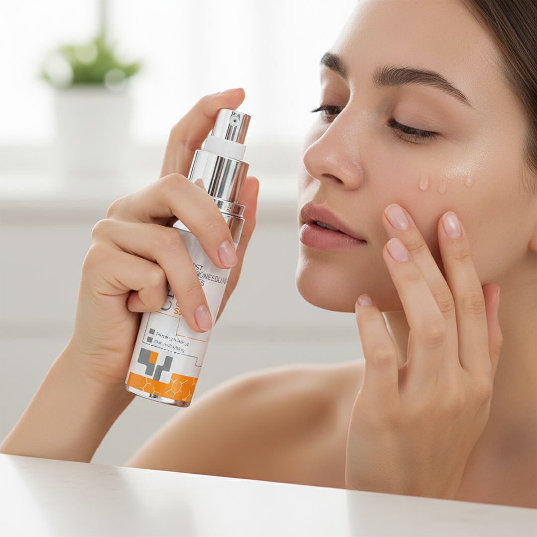 - Apply a few drops of the Vitamin Complex Solution onto fingertips or right directly onto your